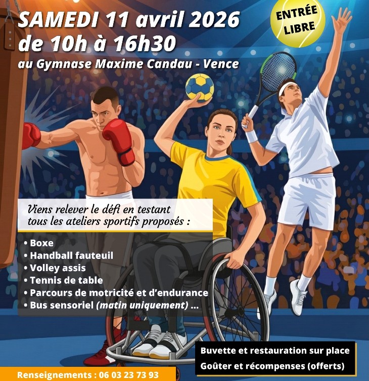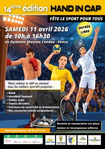 De 10H à 16H30, ne manquez pas ce rendez-vous sportif, gratuit et inclusif à destination de tous les publics. A l’occasion de la 14ème édition «Hand In Cap», l’association Handica 06 propose une journée de rencontres sportives, sous la forme de journée portes ouvertes ponctuée d’activités ludiques et originales : boxe, handball fauteuil, volley assis, tennis de table, judo, parcours de motricité, éveil des sens, quizz…