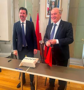 Signature du pacte d’amitié en présence de Franta, du Maire de Vence, de Pavel Pacal Maire de Třebíč, des services culturels de Vence et Třebíč, de l’association culturelle Franco-Tchèque…