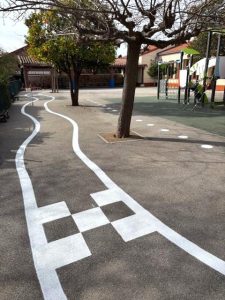 En février, plusieurs marquages au sol ludiques et pédagogiques ont été réalisés à l’école Leï Bigaradiers en concertation avec l’établissement.