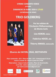 Dimanche 26 avril à 17H30, la Cathédrale sera la scène d’un concert inédit par les solistes de L’Orchestre Philharmonique de Monaco : Liza KEROB violon solo supersoliste, Federico HOOD, 1er alto, Thierry AMADI, 1er violoncelle solo.